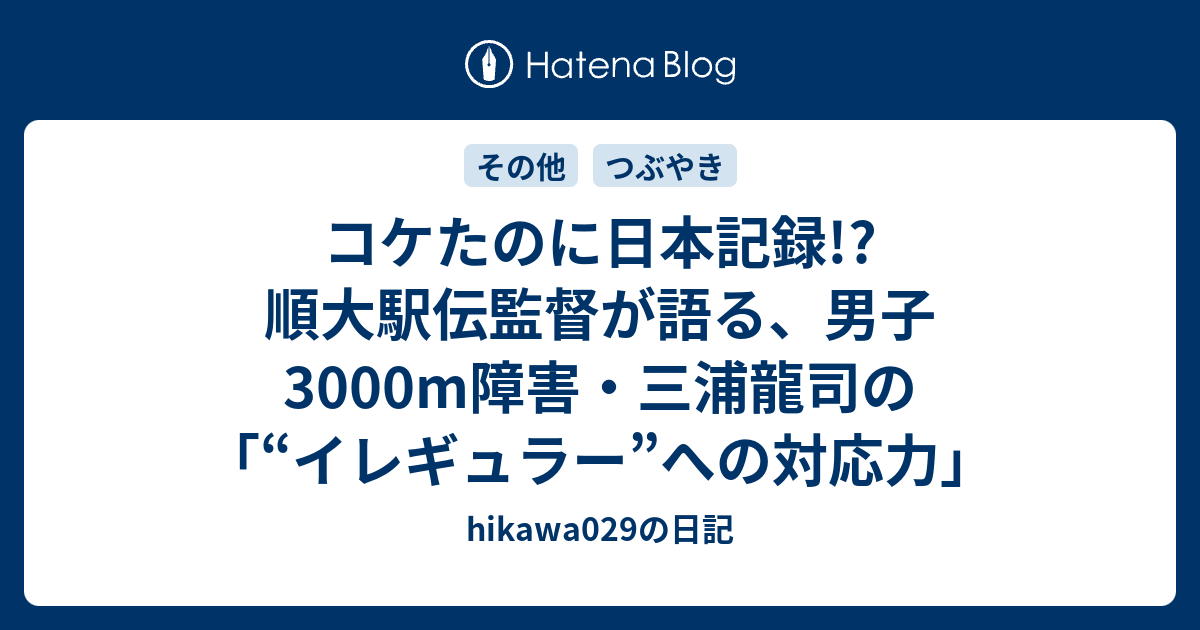 Jun 26, 2021 · 「陸上・日本選手権」(26日、ヤンマースタジアム長居) 東京五輪選考会を兼ねて行われ、3000メートル障害で、日本記録保持者の三浦龍司(19. Jun 27, 2021 · 男子3000メートル障害の三浦がアクシデントを物ともせず、驚異的なタイムをたたき出した。残り2周の水濠(ごう)で障害を越えた後、着地の. Jun 26, 2021 · 男子3000m障害 三浦龍司が日本新で優勝 五輪代表に内定. Jun 27, 2021 · 女子3000m障害物は谷本七星(名城大)が10分13秒49の大会新記録で快勝。 男子棒高跳は柄澤智哉(日本体育大)が大会記録にあと1cmと迫る5m40の自己. 水濠(すいごう) 水濠とは、3000m障害で使用される水たまりのことです。 レーンの一番内側か外側に設置されています。 陸上競技をしている人は誰もが使用するタータン。 この記事を通してタータンについて詳しくなれたでしょうか?